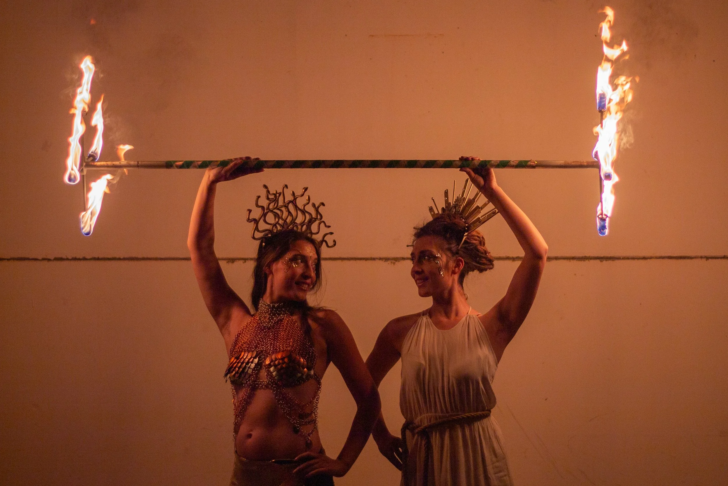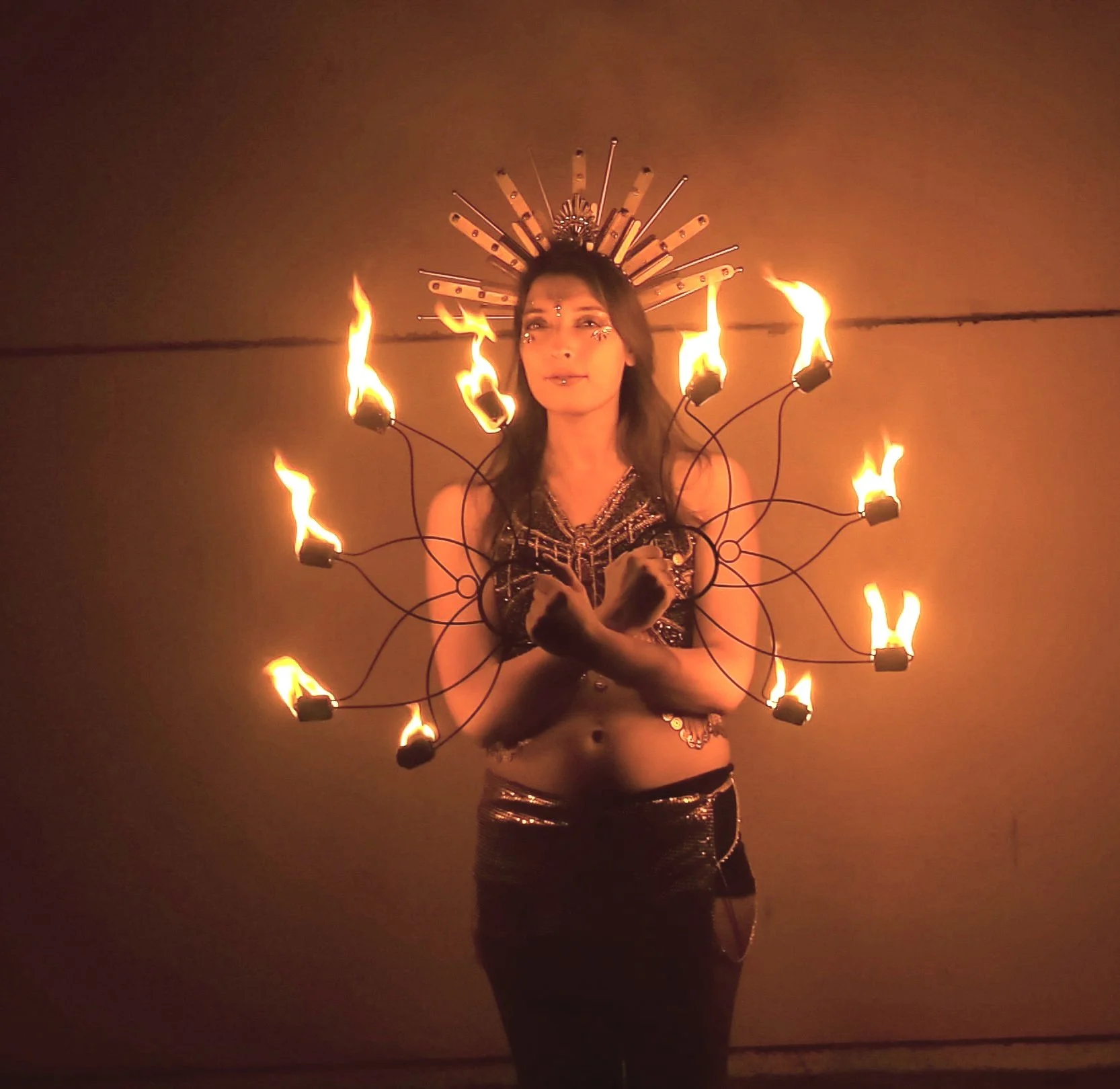 Als Performerin spiele ich hauptsächlich Feuershows, oft mit meiner Zwillingsschwester Laura oder anderen Gruppen und Künstler*innen zusammen. Ich bin häufig auf Festivals und in Clubs anzutreffen, aber performe auch auf Firmenveranstaltungen, Hochzeiten und anderen Events.